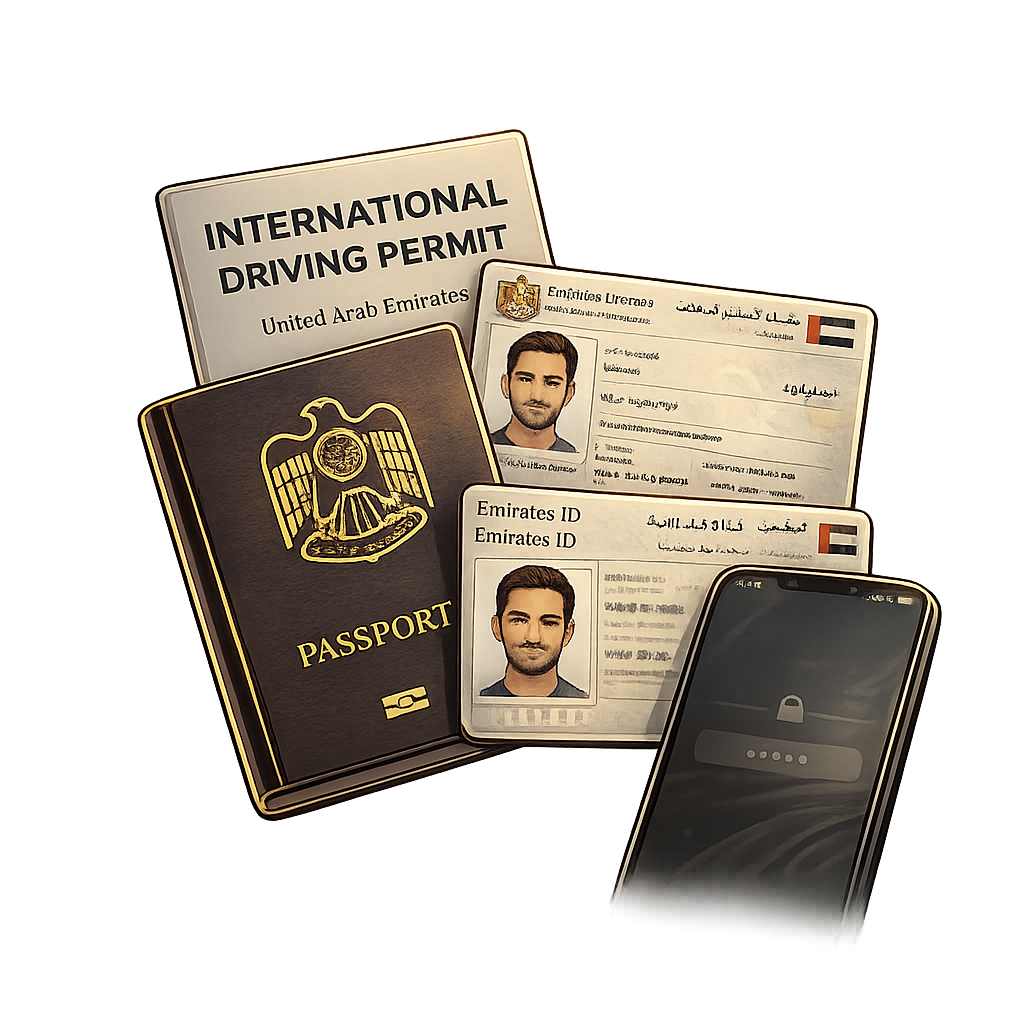 To rent a vehicle in the UAE, valid documentation must be presented at the time of handover.